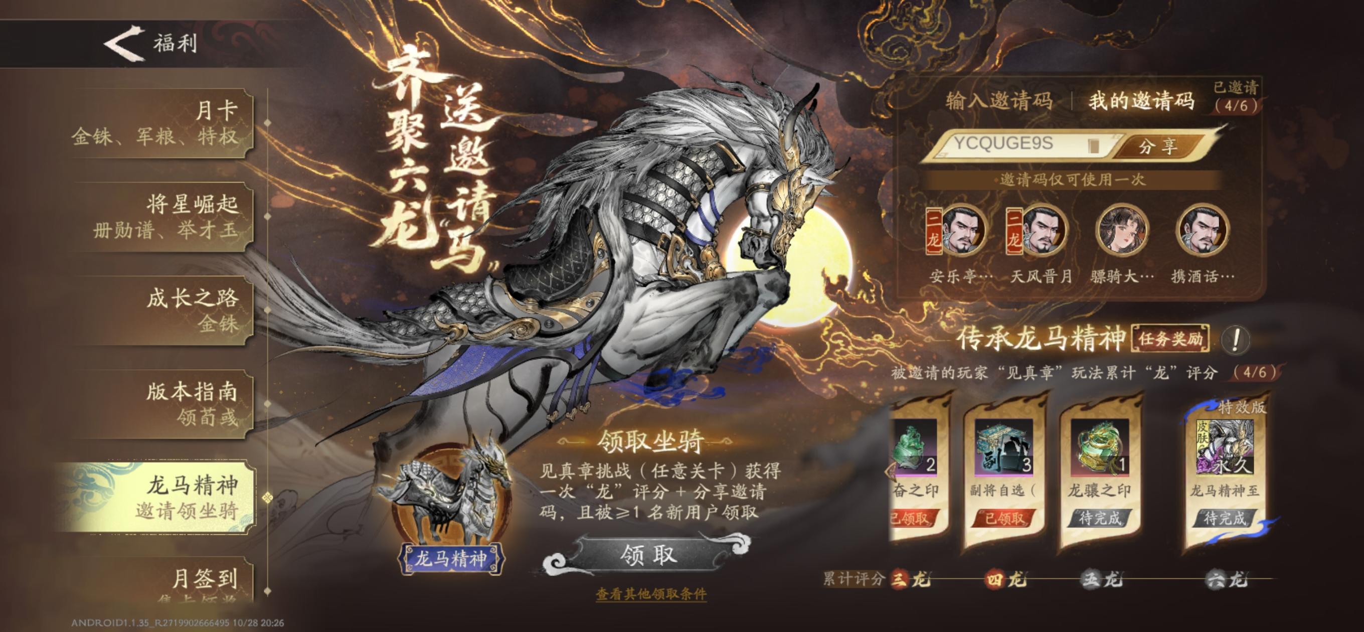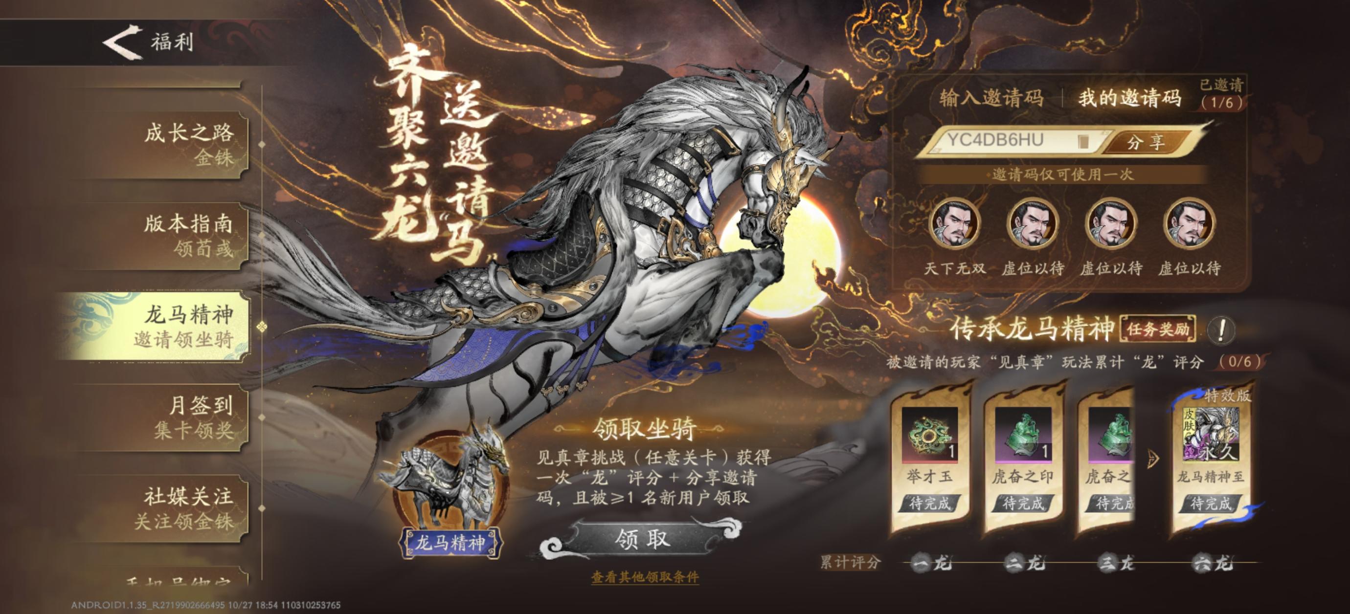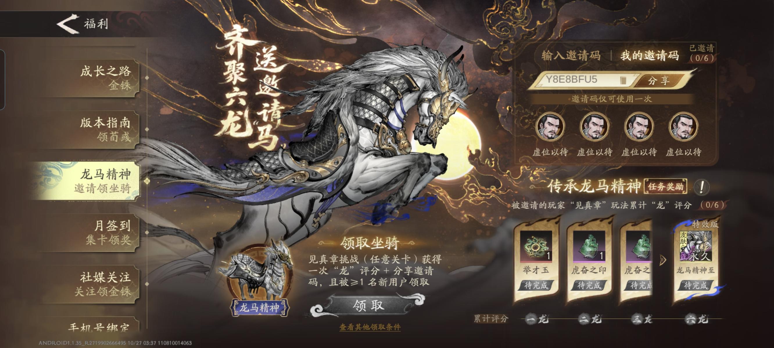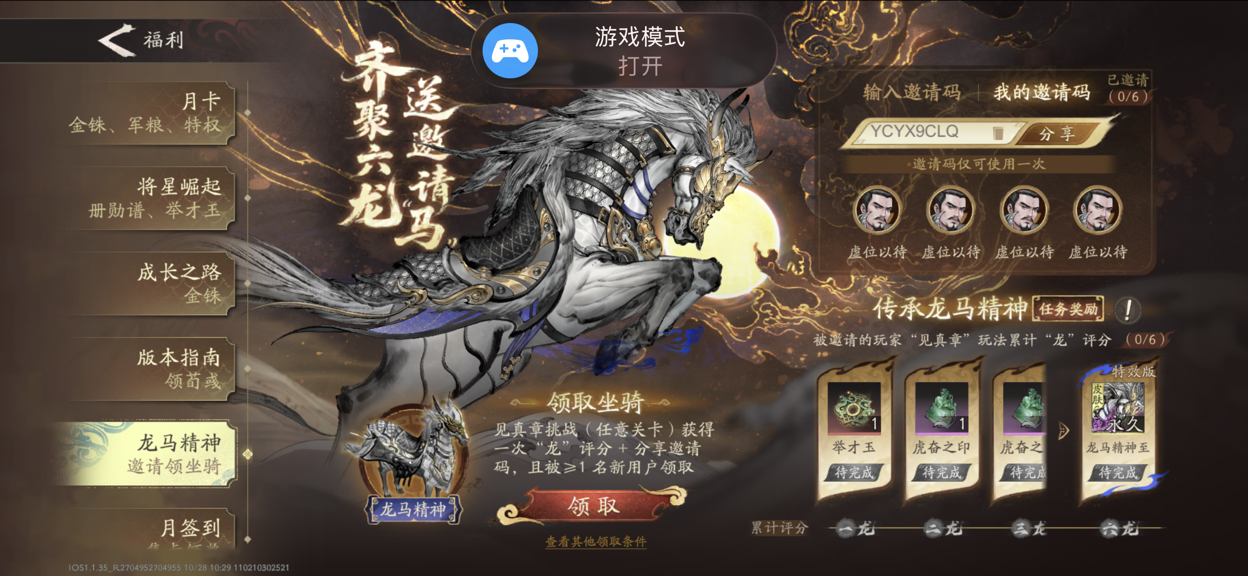 想入坑的萌新填邀请码YCCTLC49,可以在活动页面领限定坐骑