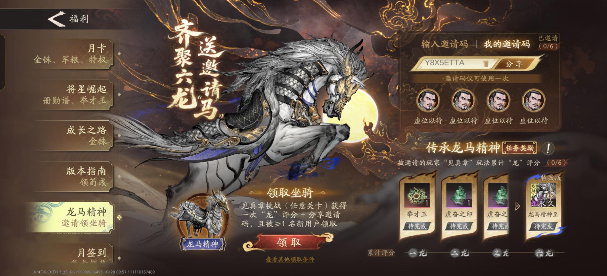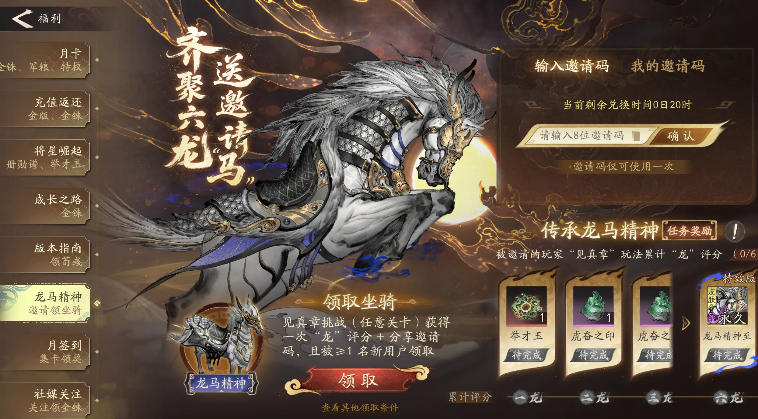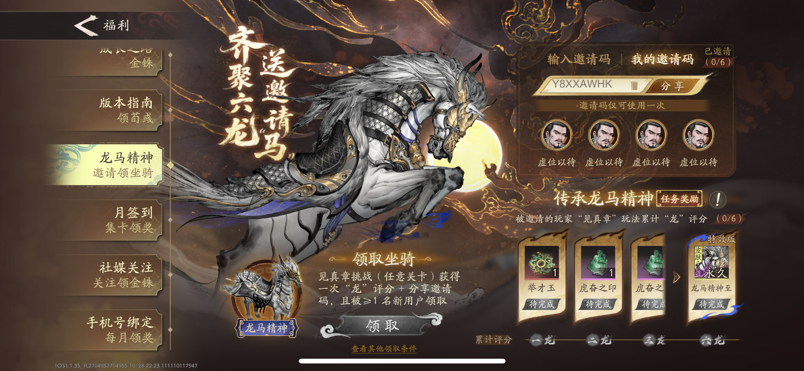 24小时注册角色号的进来填龙马邀请码领坐骑