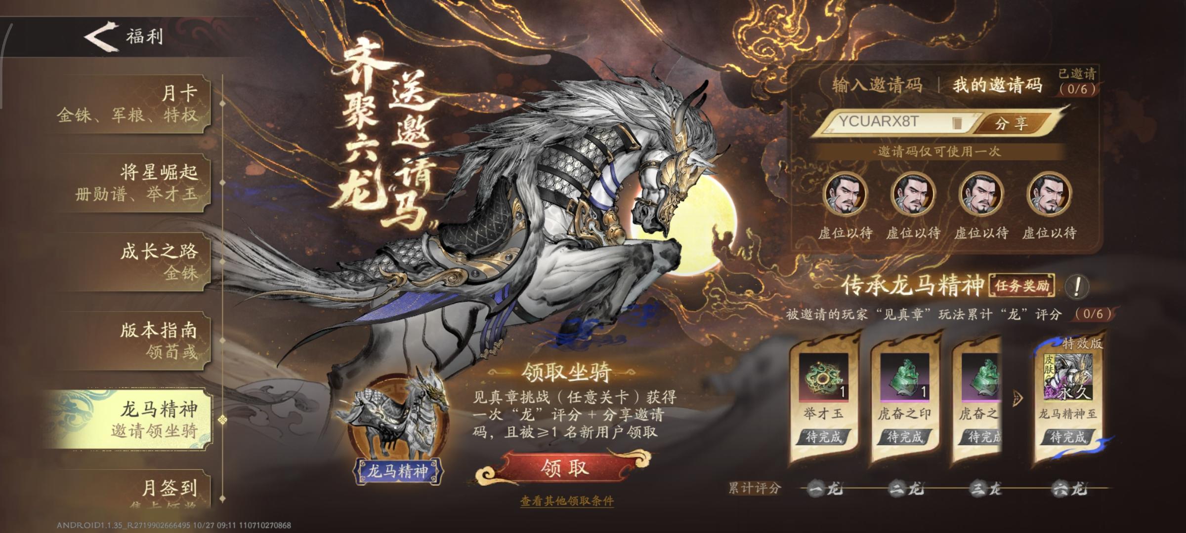 个人邀请码: YCQGECEJ填写后获得坐骑