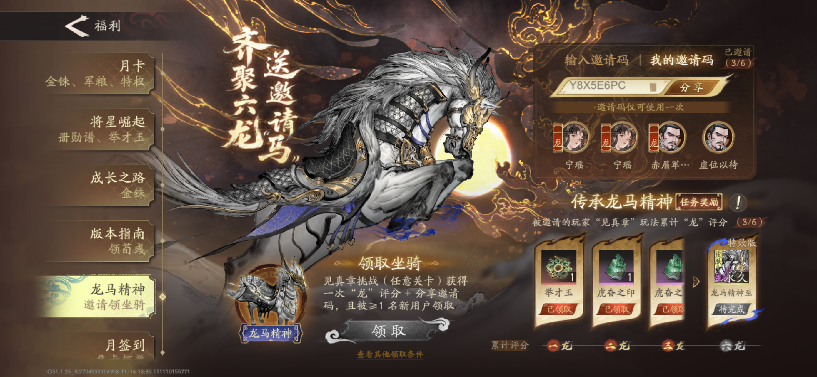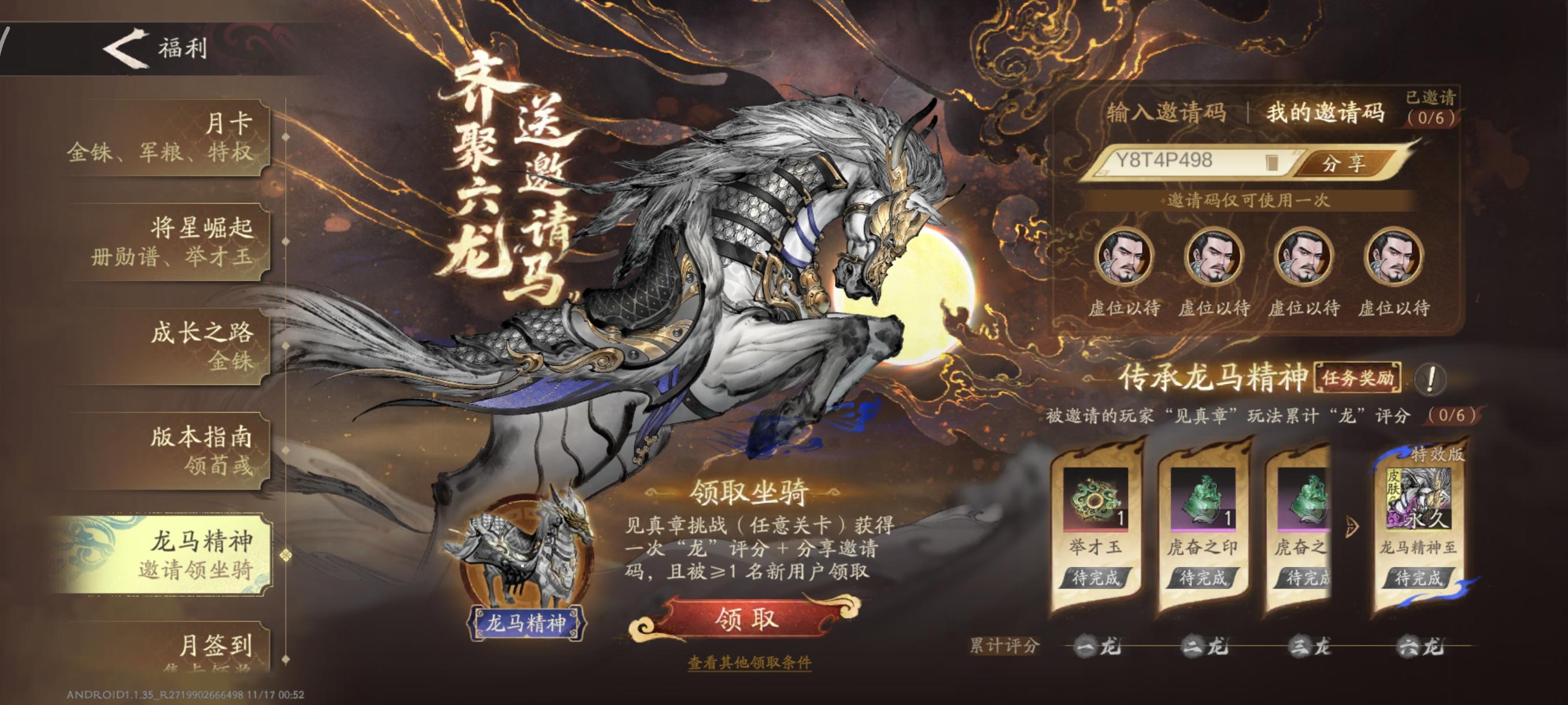 Y87JUN4Y龙马精神坐骑已六龙,复制可直接领