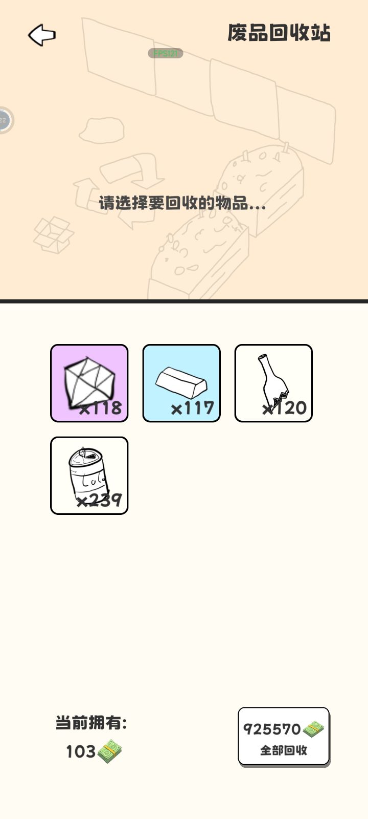 捡一次垃圾,我同学都能结束一把王者了!全程如来神掌(超过100).捡垃圾真的很无聊啊!捡一次垃圾就能卖100W多,真的很无聊啊!。开局首先叠 耐力∶1点耐力+2秒捡垃圾时间然后叠5左右的蘑菇回复和抵抗力(够用就行)然后继续捡垃圾(别睡觉,等健康没了去医院)如果购买商店都没有就刷新。(如来神掌有就拿,钱不够就锁住)然后继续捡垃圾叠回收效益。叠300多然后差不多是第三天。你大概就有