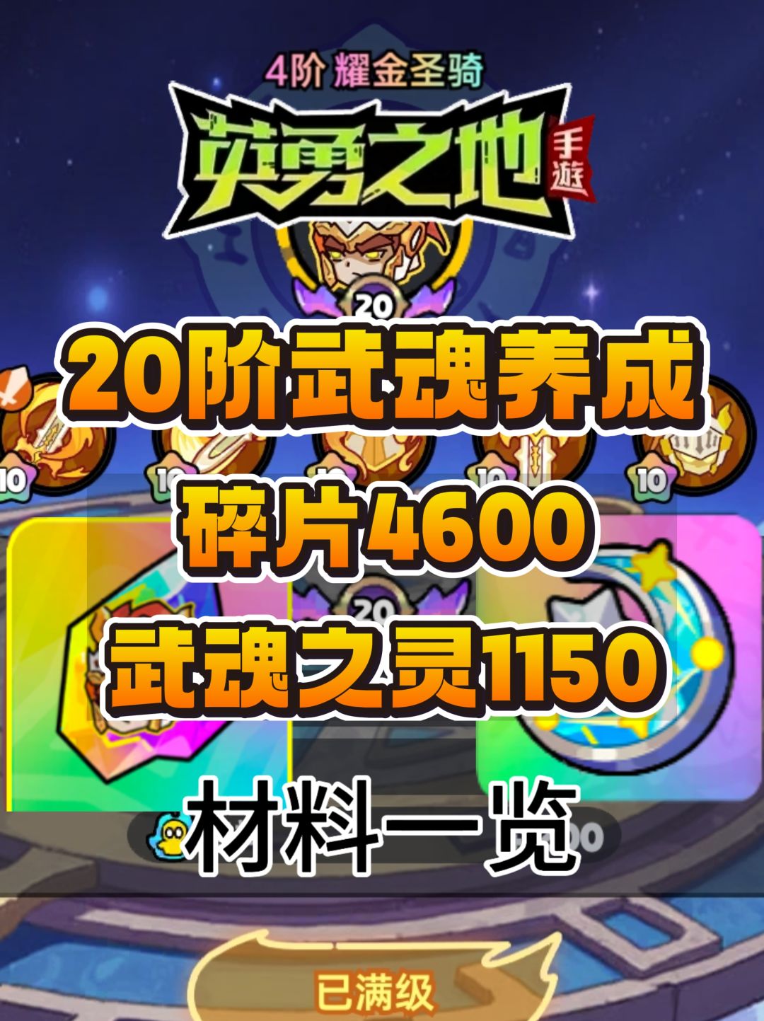 英勇之地手游20阶武魂养成材料一览