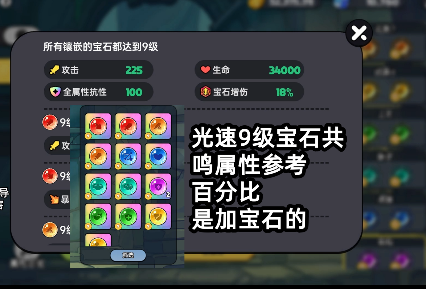 氪佬号光速9级宝石共鸣 属性参考,百分比是宝石的百分比