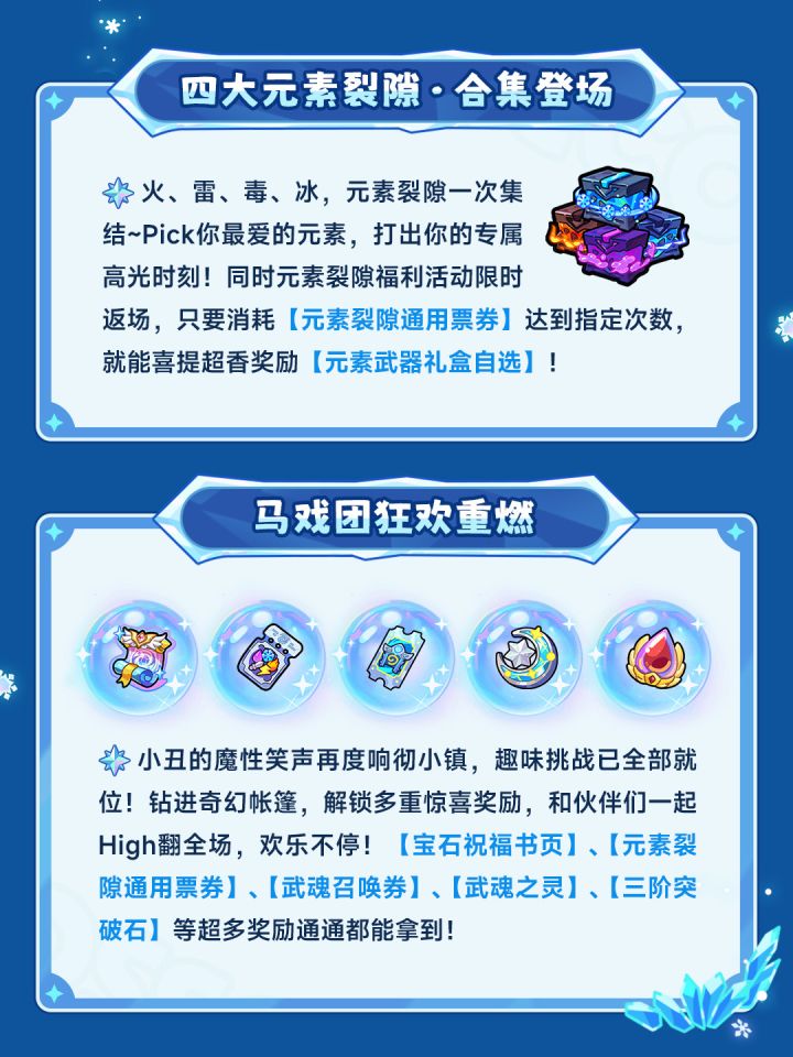 勇士们久等啦!新版本即将携超超超多好礼来袭!元素裂隙票券、元素武器礼盒、魂卡卡包、武魂召唤券等,你想要的全都有!还有清凉一夏限定返场,错过的装扮可以再次获取啦!#发现好游戏 #游戏日常 #英勇之地暖冬冰雪节 #英雄之地手游 #英勇之地英勇时刻