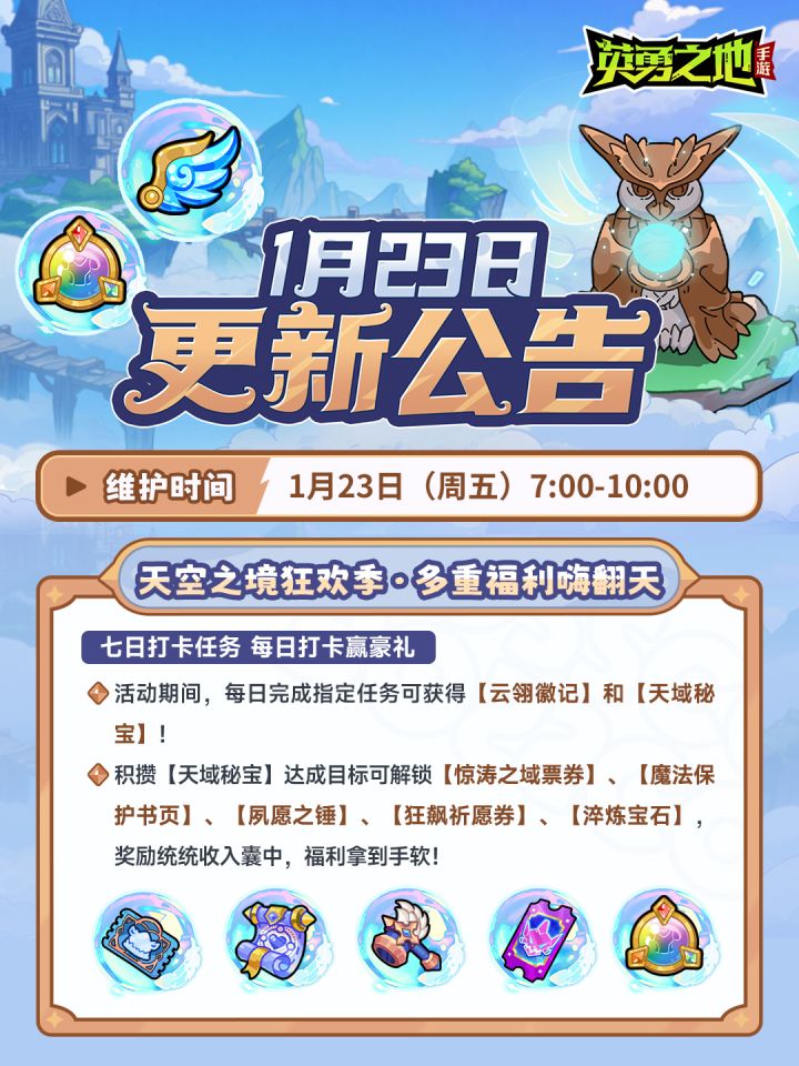 本周更新公告已送达!天空之境狂欢延续、元素裂隙福利加码、7日畅享宝石嘉年华!#发现好游戏 #游戏日常 #英雄之地手游