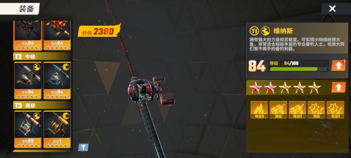 #欢乐钓鱼大师巨物模式 一:渔具选择,套路参考排行榜,可得版本答案红色:二星螳螂线-雷兽饵。螳螂线强在二星和四星的百分之比易伤。雷兽饵则简单直接,运气好两三格蓝伤害加成简单直接。 绿色:猎兽一套。猎兽赌命钓法开局拉满张力爆掉两格血能直接触发绝地,打巨怪也有用螳螂线配猎兽饵。猎兽强于猎兽饵相当于直接拿拔杆回一格气的金色buff,当然。你得赌敏捷鱼切线不回把你最后一格血给切掉。 紫色:独角兽饵。独角兽