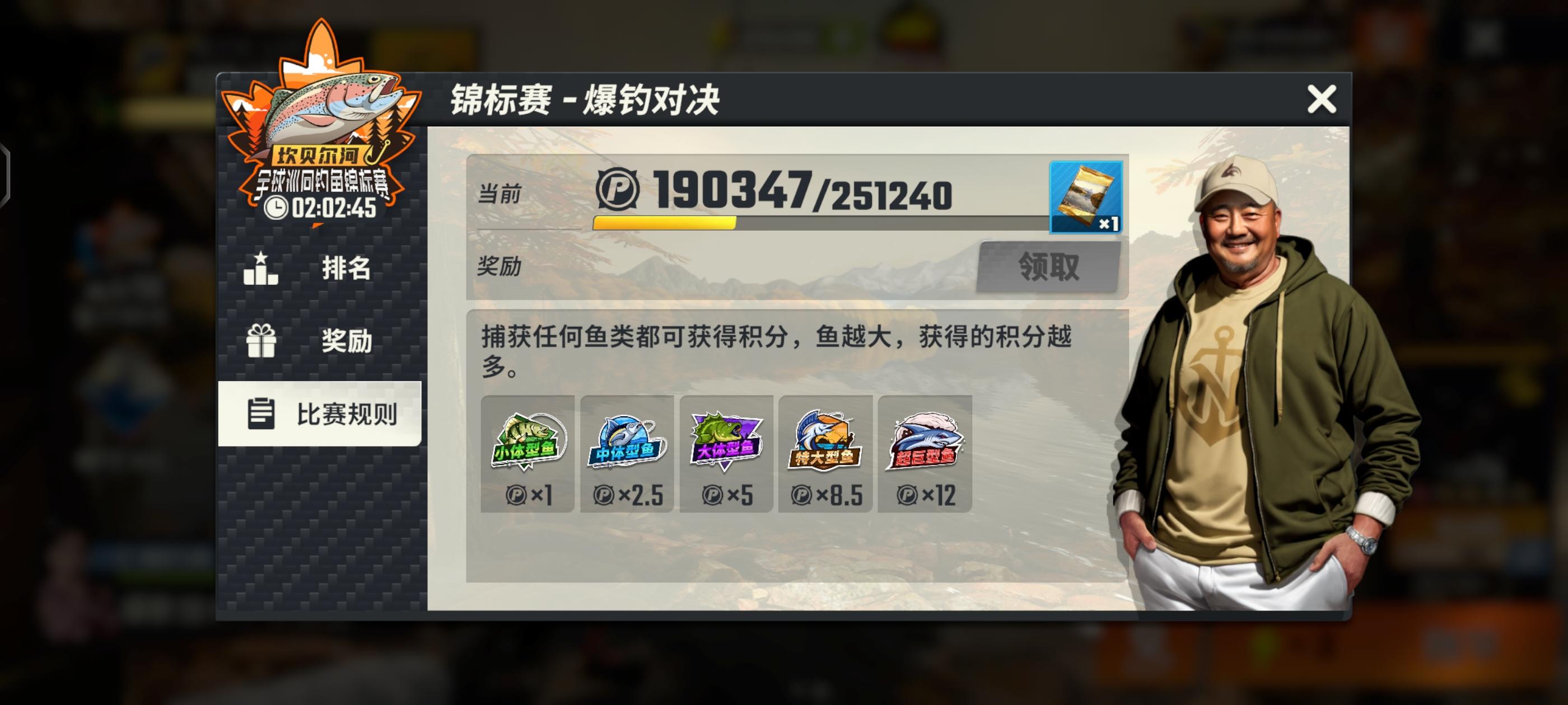 这个这个锦标赛不是说你鱼越大获得的积分越多吗?超巨型鱼旁边写着×12,可是为什么加的分还是鱼的基础分,那这个×12的意思是什么?