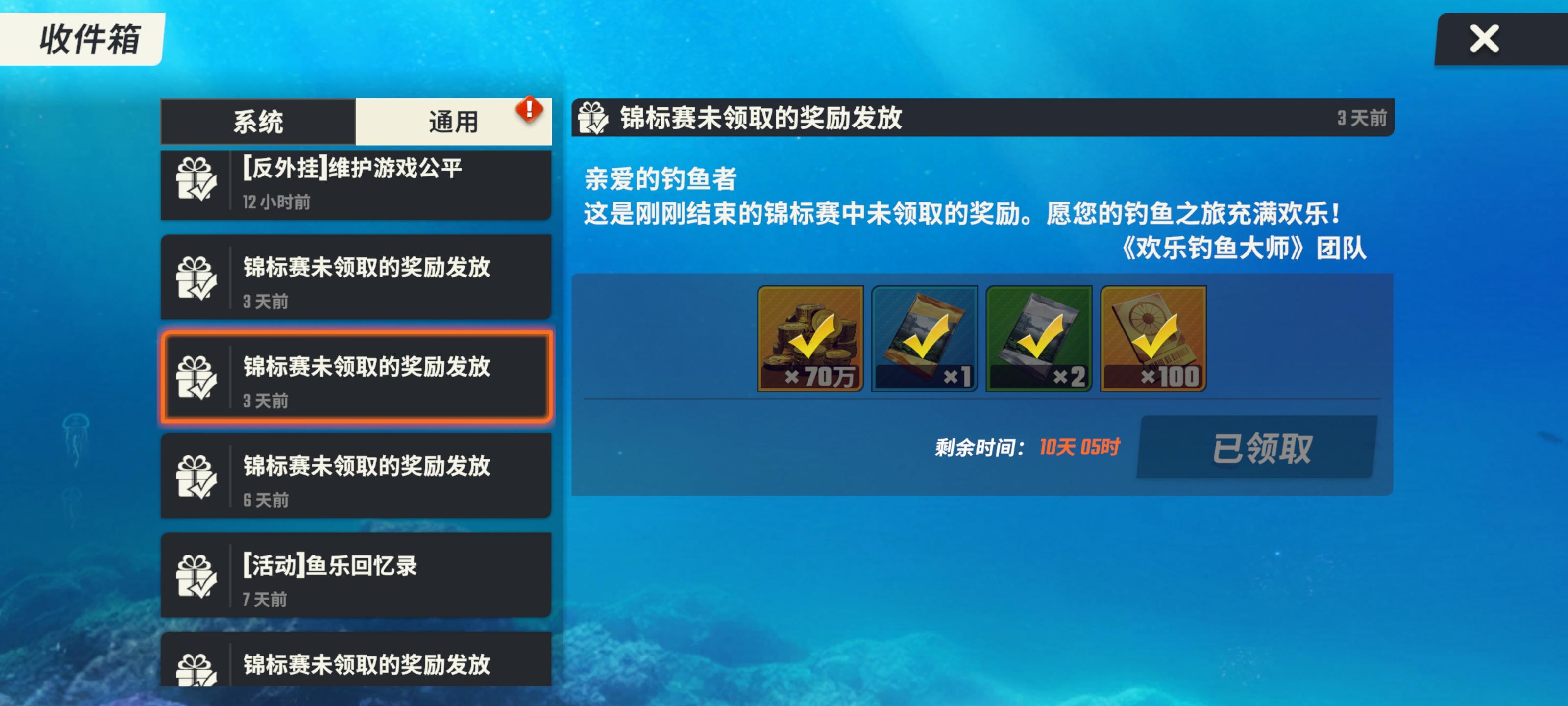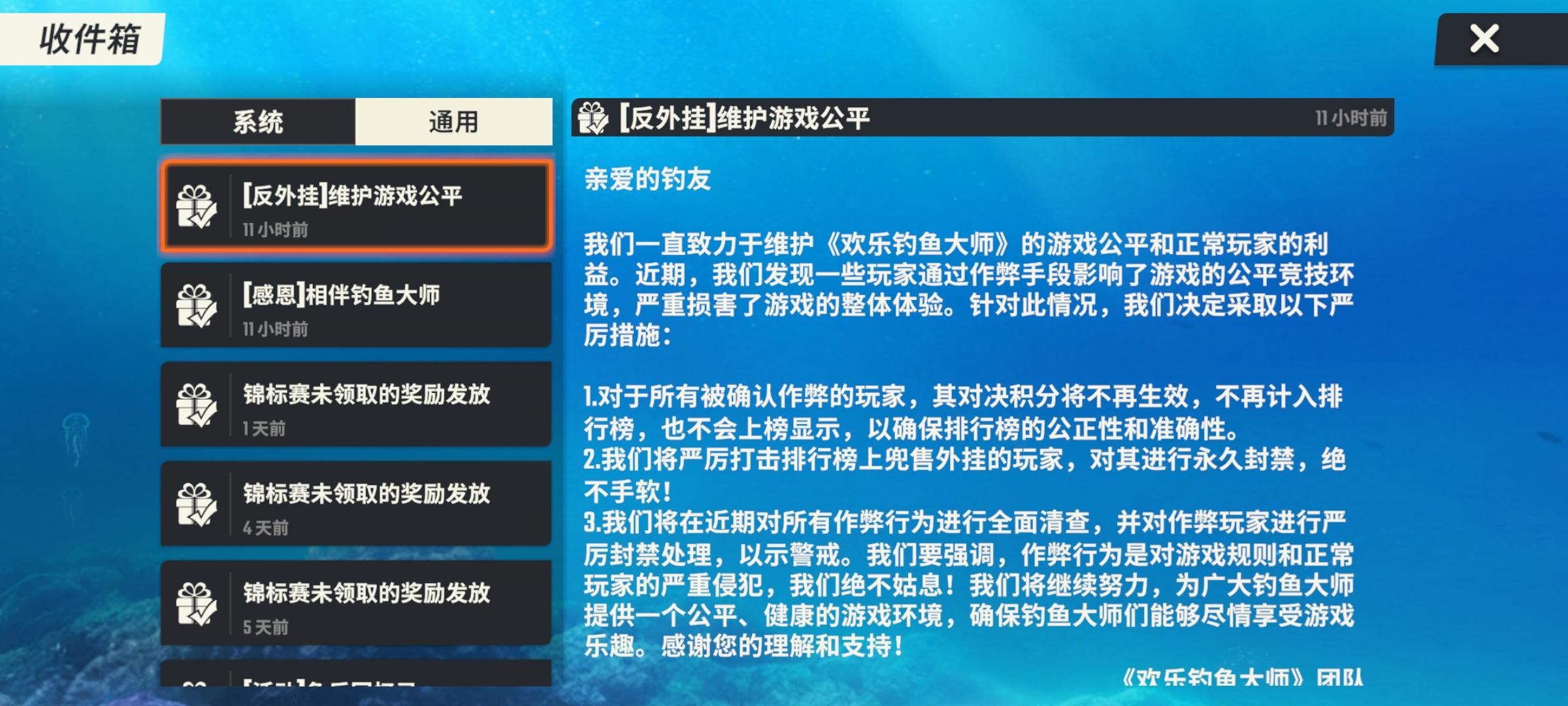 能不能出个一键删除已读邮件。对于我们这种有洁癖的人,简直是折磨!有同感的扣1#欢乐钓鱼大师 #渔获交流会