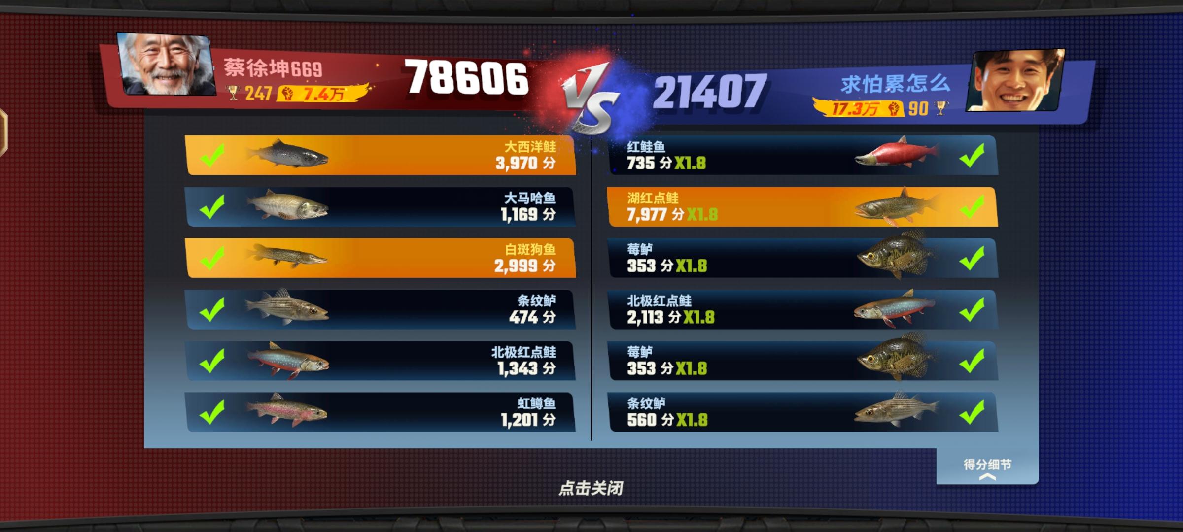 打不过根本打不过,开局秒上鱼,然后下钩上鱼都不超过两秒,给我这边界面都干卡了,我这边显示它一直是8000多分(它开局秒钓了一条8000多分的鱼),我还以为我卡了或者它卡了,然后结算的时候直接23万多分这游戏连个举报都没,客服搜索举报,外挂也都没有,全是充值遇到问题等等……😅 #浅评一下 #游戏杂谈 #举报外挂