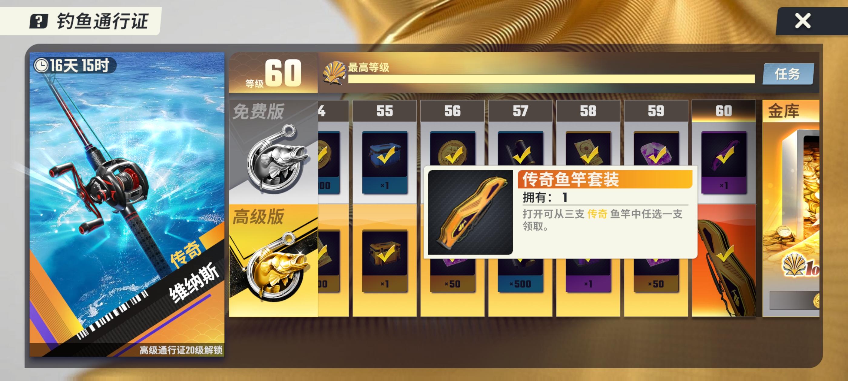 我通行证打满了,当时领了这个传奇鱼竿套装,但是我不确定领哪根杆,我就先关闭了,我去看了差这个波塞冬,结果后面就领不了了,就显示拥有一,但是去哪开我不知道