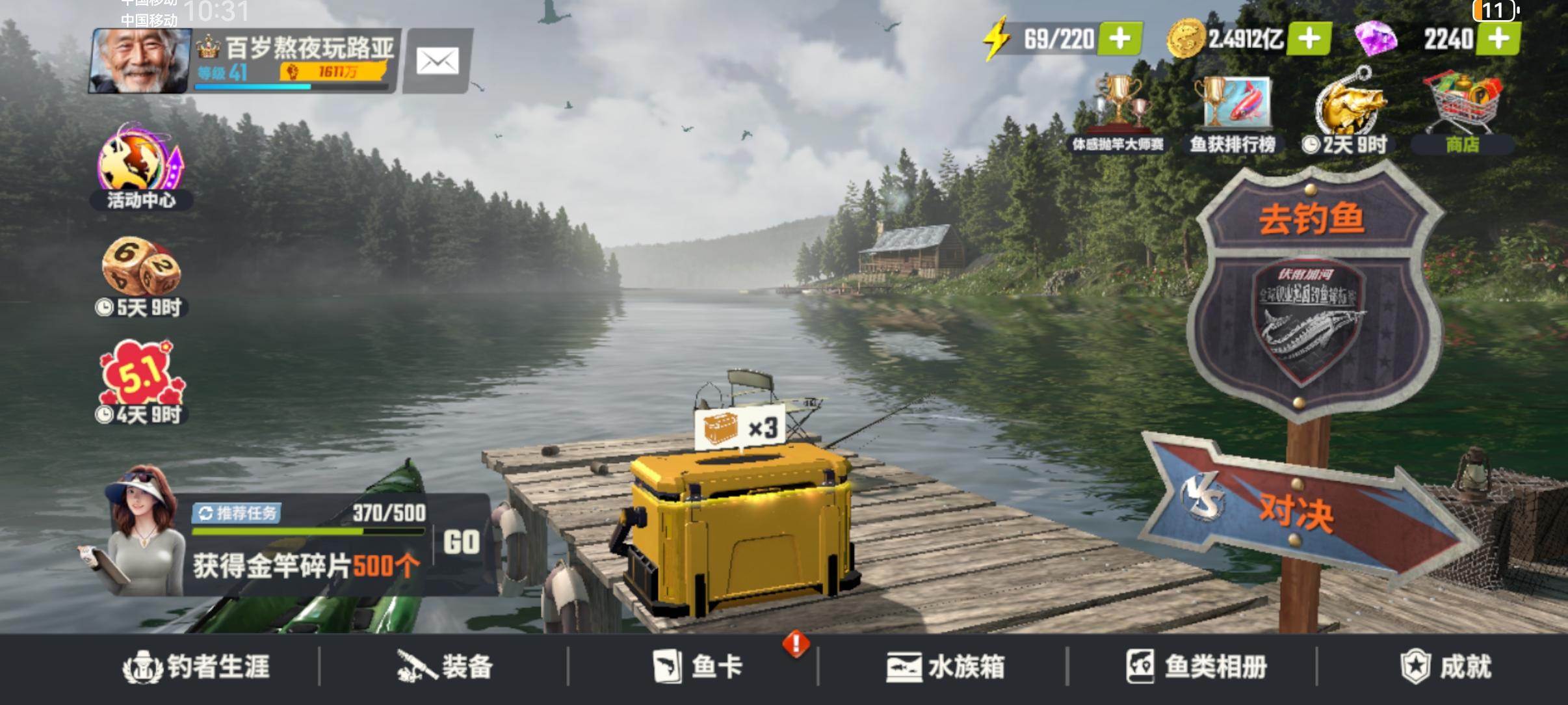 今天下午每次进决斗都打不了,一直卡在那个节目,我上次打决斗时是对面钓了1分多钟就不钓了,时间到了也一直卡在那个界面,钓鱼可以就是打不了决斗