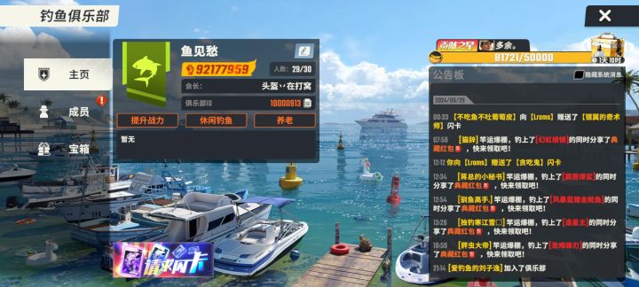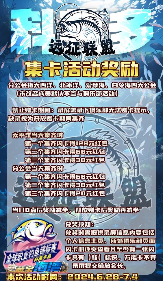远征海钓俱乐部招人啦!!!找俱乐部,死人太多,活人太少,公会活动摸鱼的太多,公会没福利,想跳槽 ✨每期集卡活动均有红包奖励,还有每月赠卡先锋奖励、不定时标鱼奖励等你来拿✨远征俱乐部联盟五个俱乐部,总有一个适合你,喜欢玩俱乐部,公会模式的速来✨🛥远征爱琴海🛥 🆔10077800群号:239524809✨加群了解详情!!!#欢乐钓鱼大师最强俱乐部