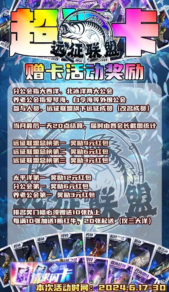 远征海钓俱乐部招人啦!!!找俱乐部,死人太多,活人太少,公会活动摸鱼的太多,公会没福利,想跳槽 ✨远征俱乐部联盟五个俱乐部,总有一个适合你,喜欢玩俱乐部,公会模式的速来✨新加入成员要求 平均单日消耗体力 4000以上 并接受改名要求✨⚓远征太平洋⚓ 要求战力500万以上🆔10012777 要求周贡献3500+🛳远征大西洋🛳 要求战力400w以上🆔10016951 要求周贡献2500+