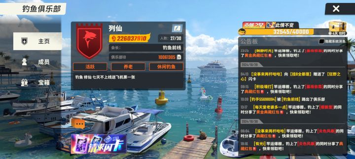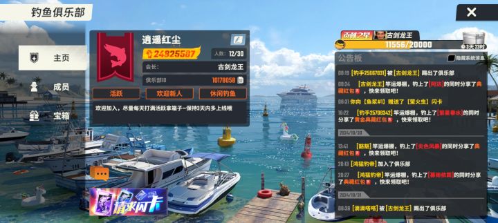 本人活跃度拉满,战力200左右,求一个活跃的俱乐部##欢乐钓鱼大师