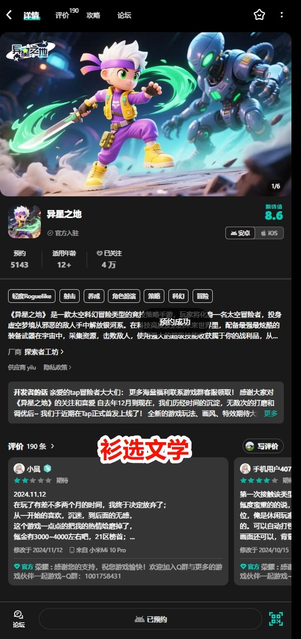 每一份预约都是期待的种子,愿《异星之地》这款游戏破土而出时,以独特魅力惊艳众人,书写属于自己的辉煌游戏篇章!