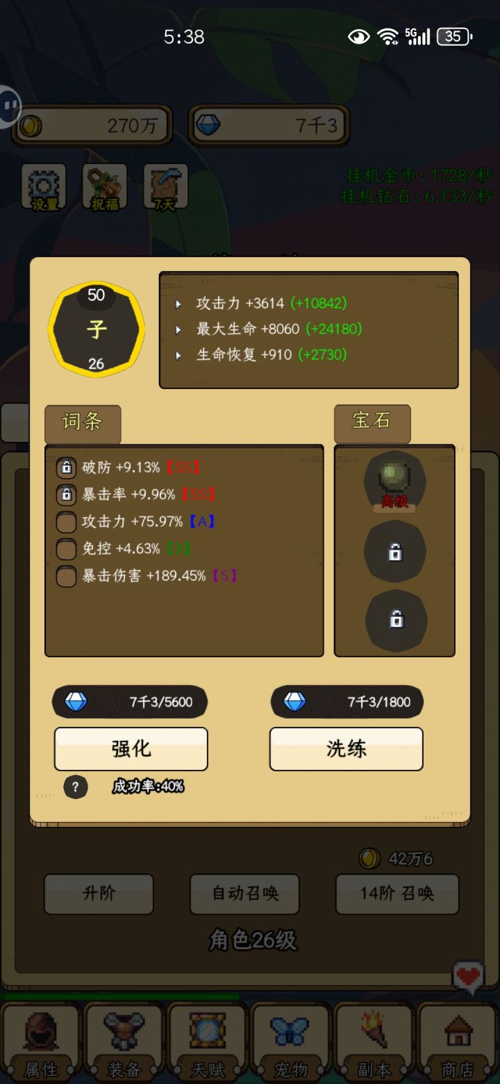 属性跳的太不合理了,像2551一下子比2550多出来好多倍,我的攻击和怪物血量差万倍,怎么可能打的过去