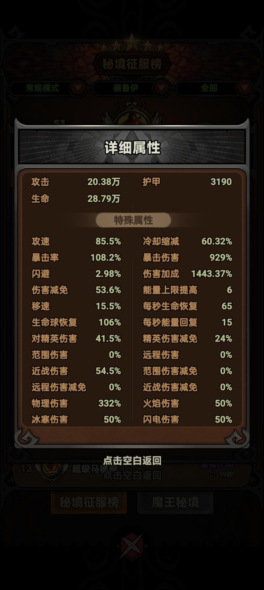 大家好,我是tap一区青安。这边我来说一下哈,包括我自己也一直在朝着21秒极限在刷,当然咯,我还在26秒,一个渣渣。如何实现22秒,我可以教你们,但是你们得有这个数据在首先,满宝石,锻造8+以上。这个数据不能少,面板数据,190+伤害加成,20万血,134移速,90+暴击率,380+爆伤。近战80+对精英上50+。关于对冷却这个档次说明一下,上个帖子我说的是43或者50,这个是平时刷图的一个舒