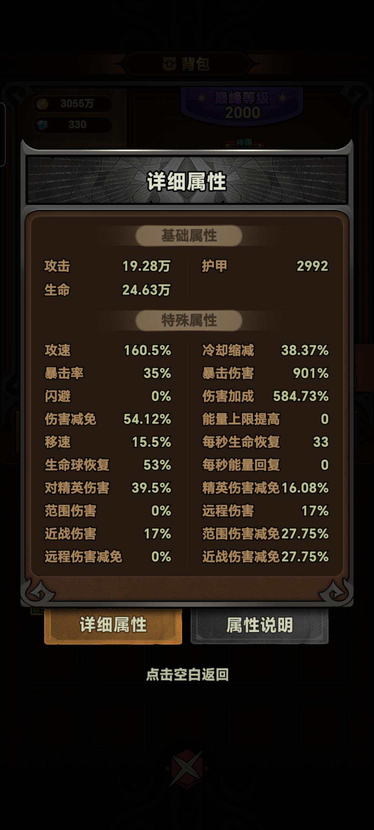 如图这个破属性,攻击生命都不超过10万,1200的巅峰等级,宠物也没满星钻石更是大部分都不满星,我已经杀到了138层,直逼前面两个2000巅峰的大佬,核心就是吃球,我看 s3好像没人发野蛮人攻略,各职业都150层了,s3 只有野蛮人最苦逼吗,先睡觉,有想讲解的可以留言,有需求的话我明天就发详细攻略。#迷雾大陆