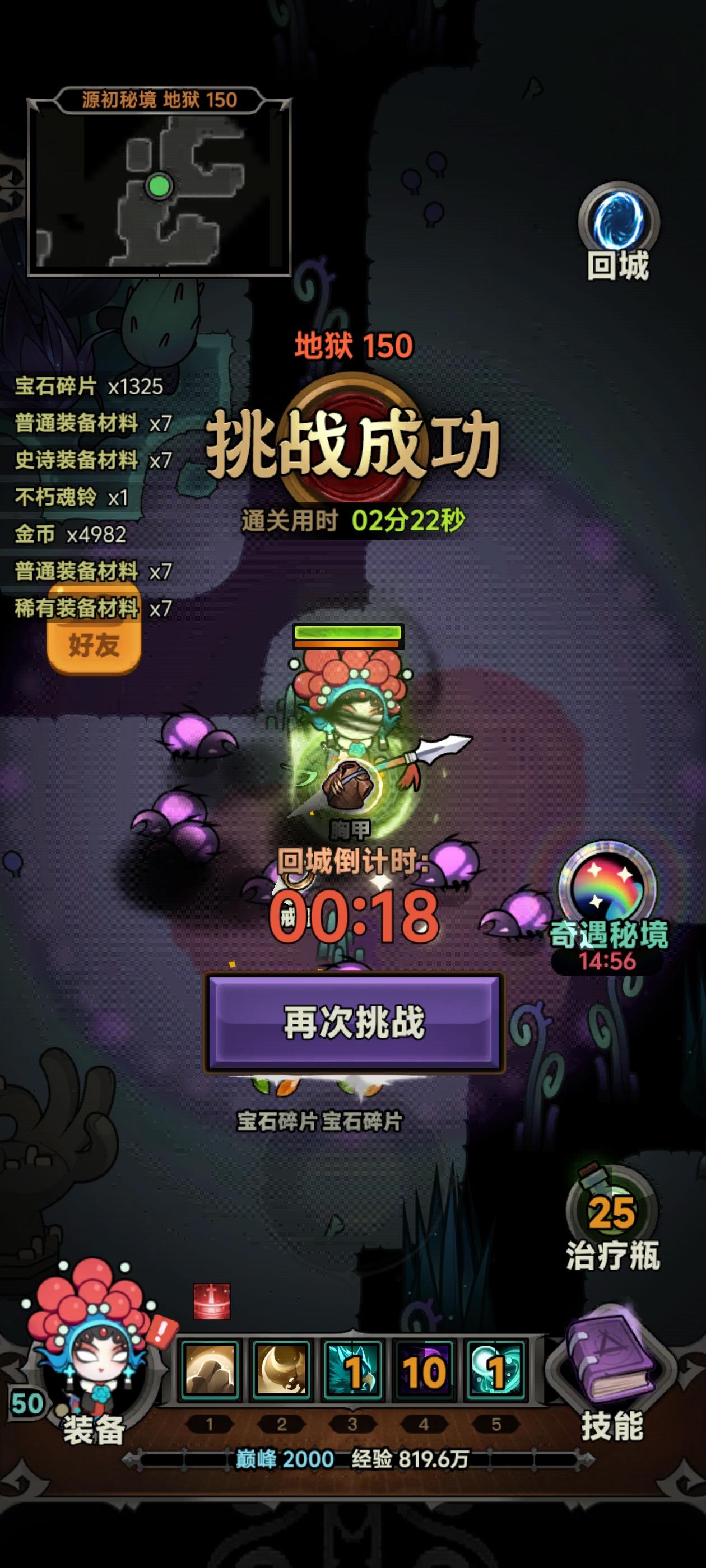 继几个小时前通了一次150后,简单干了一下宝石又提升了一波,这里简单分享一下1、赌地图,最理想的地图是沼泽图,怪非常密集运气好的话一分钟可以打满进度条2、赌boss,最理想的是狼人和法师,链条哥和旋风乌鸦看到直接放弃3、赌电塔,没塔玩不了一点