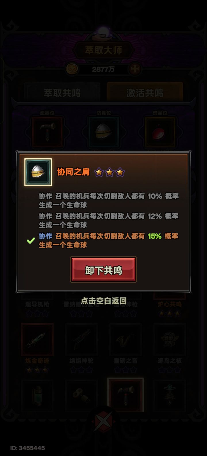 核心:协作帽-机兵产生命球轴承锤-4引线配指引者 削弱boss杠杆神符-加攻速斥敌肩-挨打削弱boss机兵两件套-加机兵攻速产球效率技能-普攻、能量屏障弱化boss生命萃取-产球武器、副手、戒指随意 纯辅助没伤害,高低也算个治疗