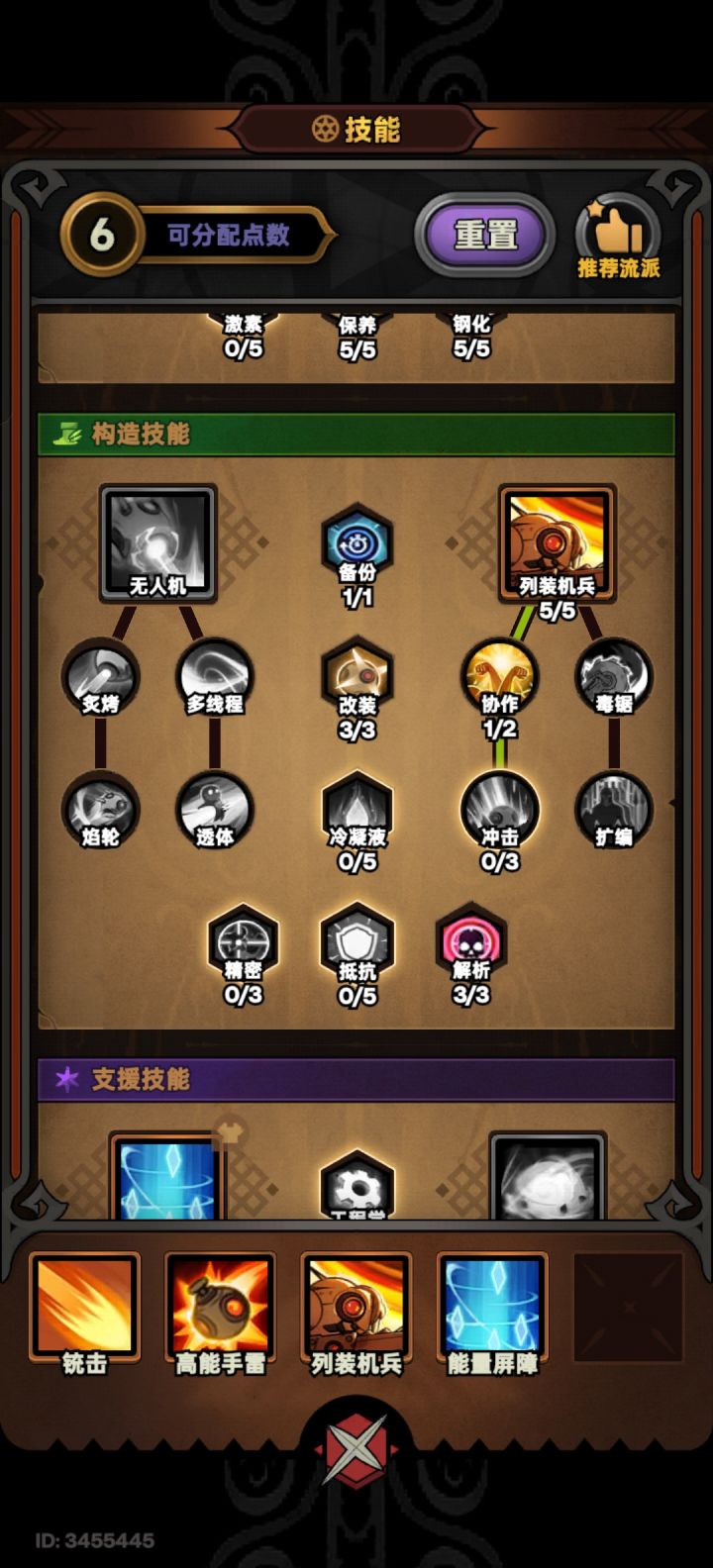 机械师的普攻流派,特别注意如果有小机器人,技能点可以省略。