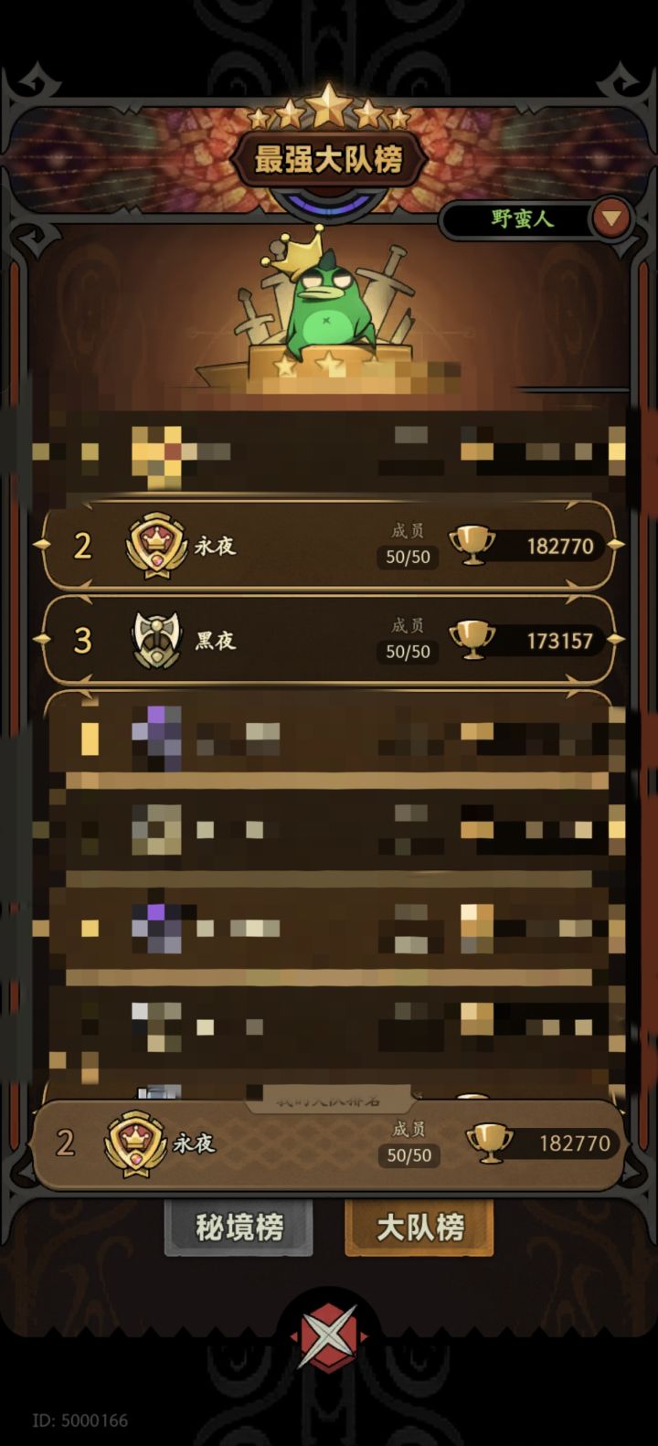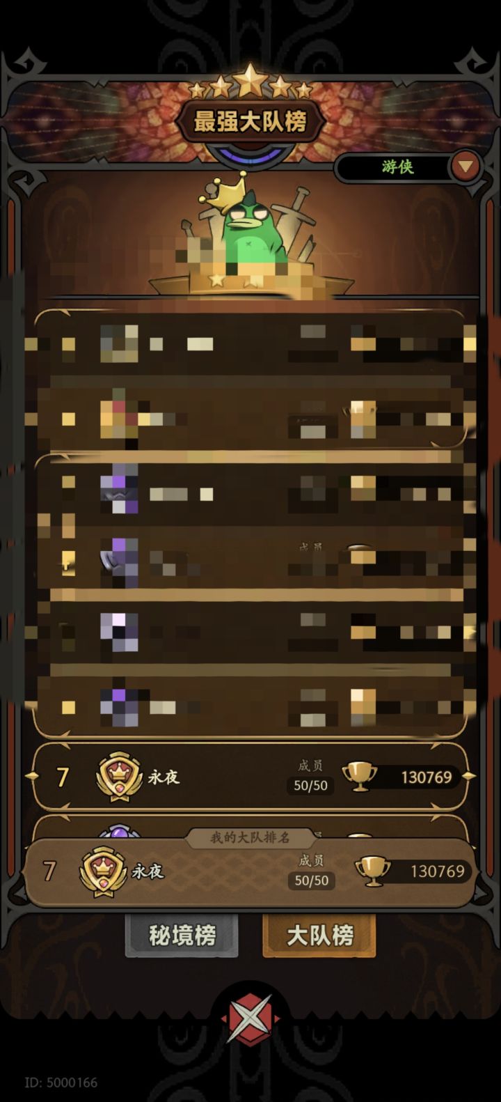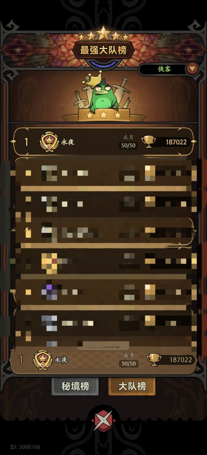 TAP区永夜大队多个职业榜处于前列位置,总榜稳定至前二(目前第一),同时,针对不同情况,我们还设置了两个分队养老大队——黑夜(稳定前10,实力同样强大)带新大队——星夜(内有大佬带队,萌新也能快速起飞)同时,我们还对非大队萌新做出了帮助活动——免费带层(非第一时间)如有大佬想要加入,可互关私聊