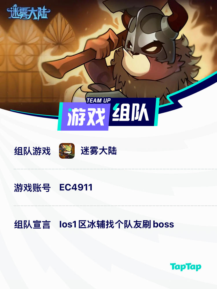 🚩游戏组队 ID:EC4911 宣言:Ios1区冰辅找个队友刷boss#噗噜噜实验室