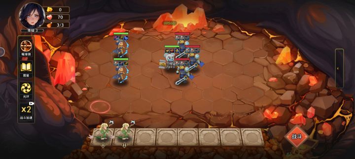 第一关:主力输出(熊王)觉醒5%冰冻;螳螂主抗;另外两一级一上一下上去扛,增加后排输出时间,前排扛伤时间。第二关:主力输出(银弩)可觉醒可不觉;技巧点(幻羚)有减疗效果,50%物理真伤;这样站位为了集火先秒掉一个(斧手);秒掉一个斧手之后,后排(银弩)加十攻击范围直接会攻击火男,火男有aoe,需要秒他。最后一关:这关我有失误把攻速最高设成了冰鸟;导致(太阳妹)大招直接给(冰鸟)。这关主力输出(