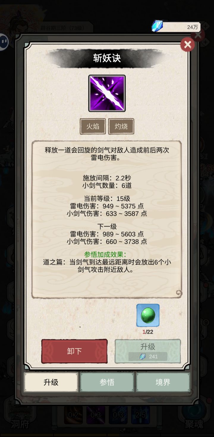 这个关键词描述显然是错的吧,雷系哪来的火焰,参悟升级也没看有灼烧,这些都次要的,主要是这个技能吃不吃剑气加成呢?