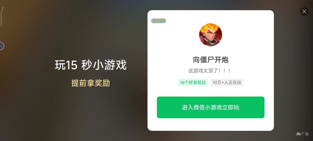 上来就让你去玩15秒微信小程序游戏,稍微差点的机器都没办法同时上两个游戏吧。你们这些游戏接广告能不能有节操一点?