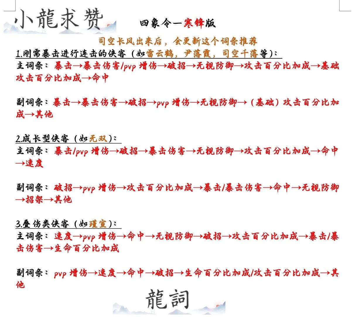 寒锋侠客的数量不多,等司空长风出来后会对该贴进行更新。若有错误望各位大佬海涵。#少年歌行手游 #少年歌行四象令 #少年歌行阵容搭配 #少年歌行装备词条 #少年歌行手游攻略 #攻略