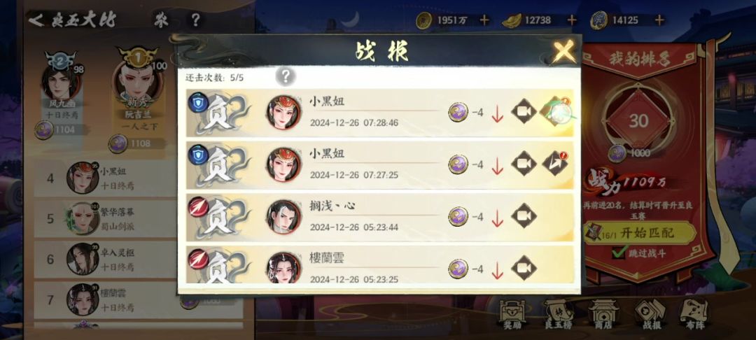 查看回放,发现打的都不是自己阵容,不知道系统安排的啥,名字都不对