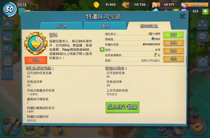 #PURRCPCP 5人战队招人 诚邀30级以上活跃玩家加入 高速发展期