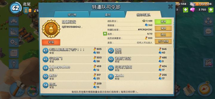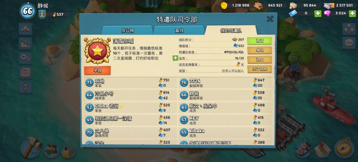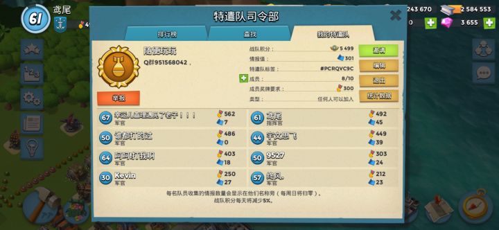 队里主打一个为所欲为,没啥过分要求,每天上号领领钻石箱就行了。前一段时间因为卡兵的原因队员基本都退了,有的玩国际服了,今天是招募队员上号的第二天,任务难度会慢慢上加的,钻石也会原来越多的。有v群,可以进群吹吹🐮🍺,唠唠嗑。#PQUQLJQL fk190a 加我进群#海岛奇兵