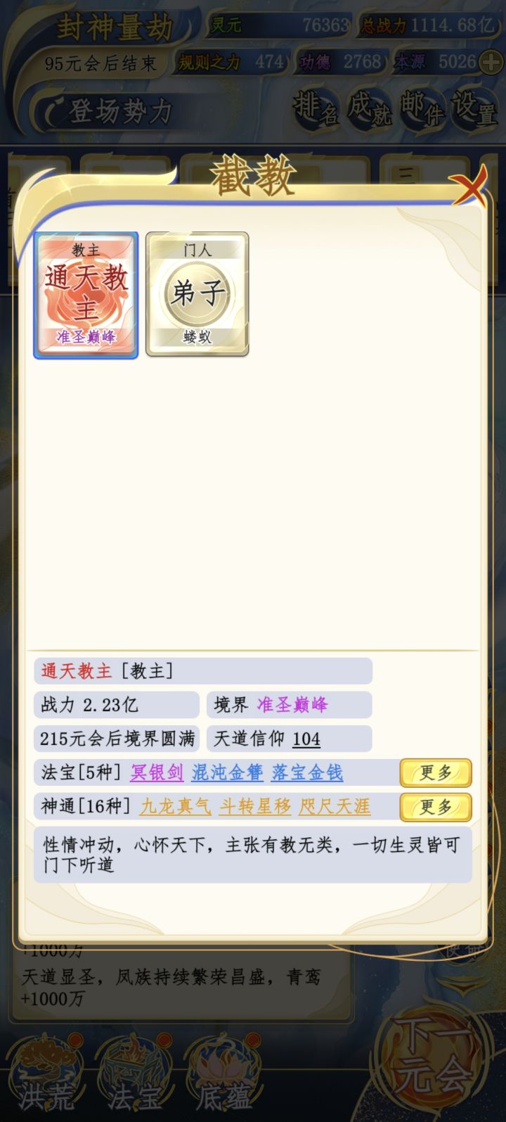 太离谱了,通天成立截教,结果战力从13.27亿降低到2.23了#