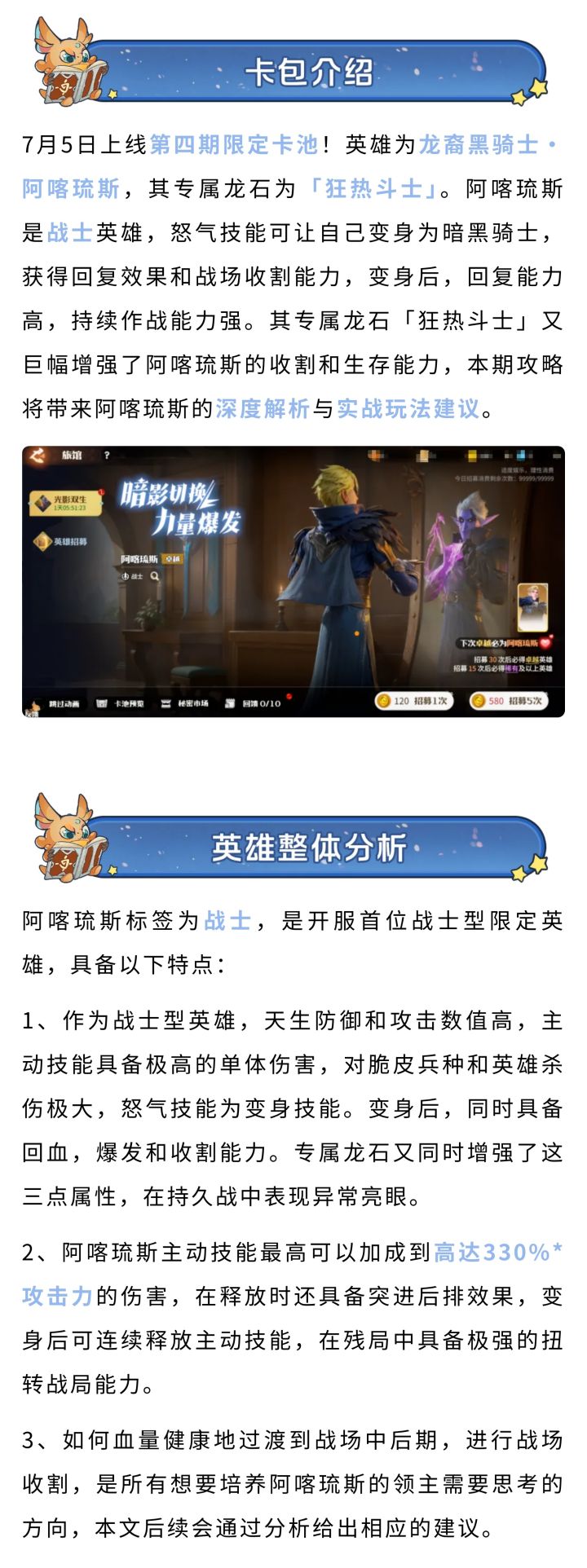 第四期限定卡池!英雄为龙裔黑骑士・阿喀琉斯,其专属龙石为「狂热斗士」。阿喀琉斯是战士英雄,怒气技能可让自己变身为暗黑骑士,获得强大的回复效果和战场收割能力!这期视频为大家带来他的全面教学。 #龙石战争 #龙石战争626全平台上线 #驯龙勇士集结 #新驯龙高手 #SLG手游 #英雄攻略 #阿喀琉斯