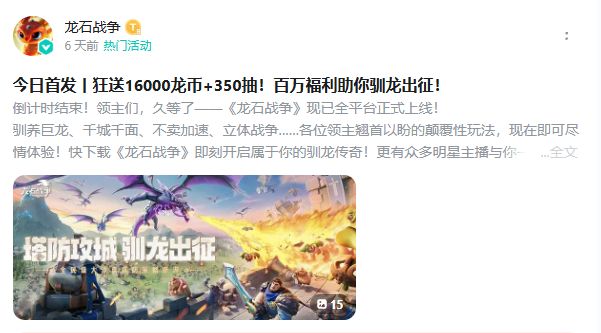 今日首发丨狂送16000龙币+350抽!百万福利助你驯龙出征!