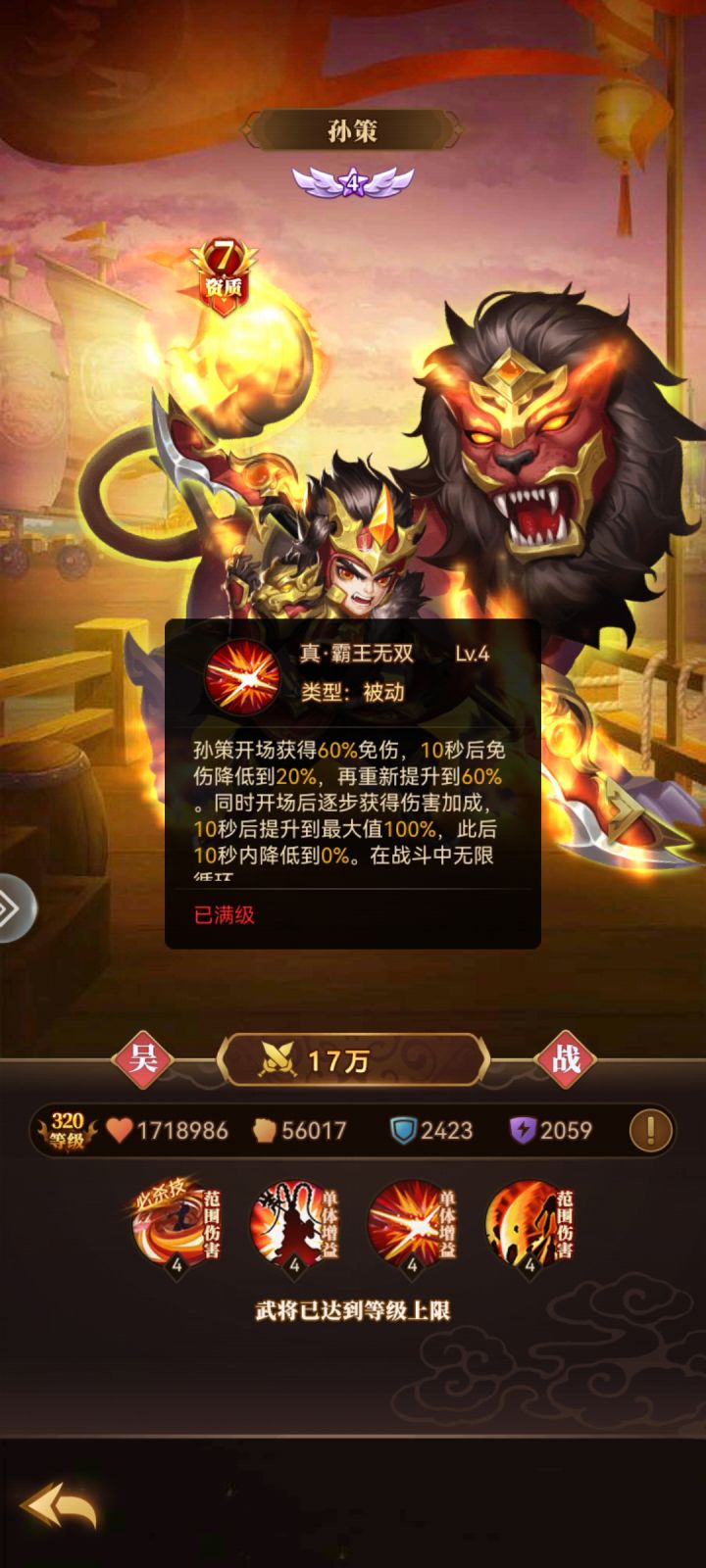 新手开局,战士流是最推荐的,在这推荐徐晃、孙坚、孙策三位爱将,下面我就介绍一下个人喜欢的特点~孙坚:不死之身的江东猛虎真·猛虎之怒(Lv.4):这一大招无疑是孙坚的核心,不仅为他提供了高额护盾,还大幅度提升了他的伤害输出。 最为关键的是,在受到致命伤害时能够瞬间恢复大量生命值,这种“锁血”机制让他在战场上几乎成为了一个不死之身。这种肉度,在团战中尤为明显,可以吸收大量的伤害,为