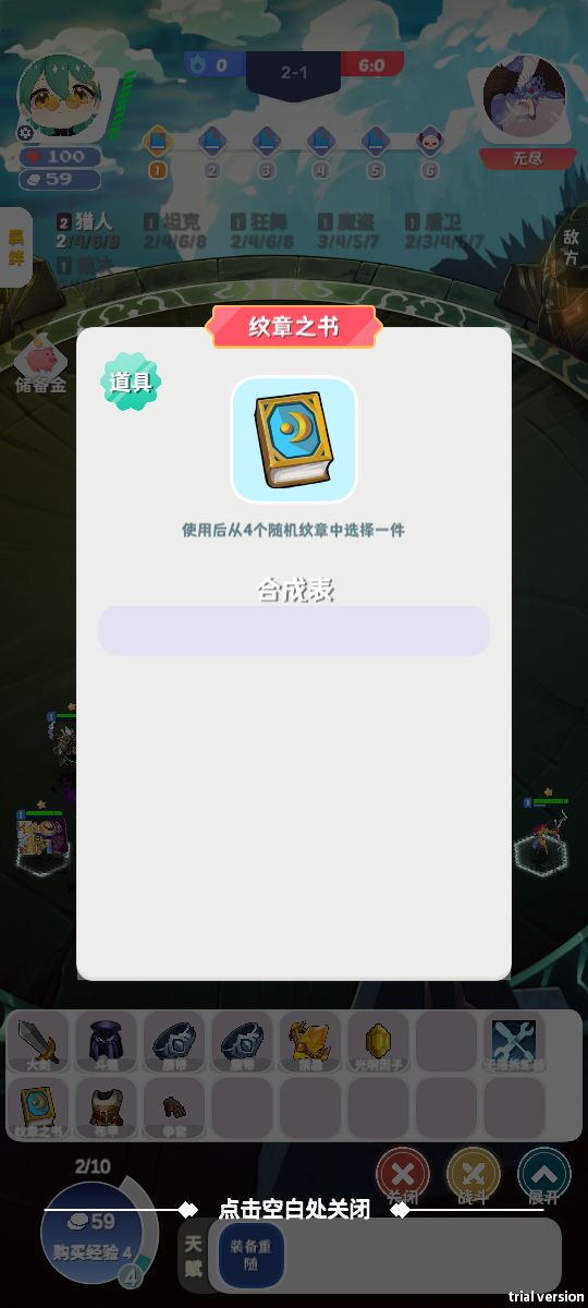 阵容9猎+其他主输出:斧王天赋选择必选 1.神器两种 2.分裂弓强化(搞成光明) 3.吸血剑强化(加盾那个) 4.猎人羁绊(或合成的铲子,锅子,勺子自己查下图鉴)非必选 1.装备重随 2.装备分解 3.重量级 4.解控(最好选金属脑)注:1.羁绊先上经济或者两猎吃加成,经济首推真武,比较无脑好凑羁绊。 2.分裂弓强化必选,神器需破败或冥火或禁忌。 3.就算凑不齐9猎,