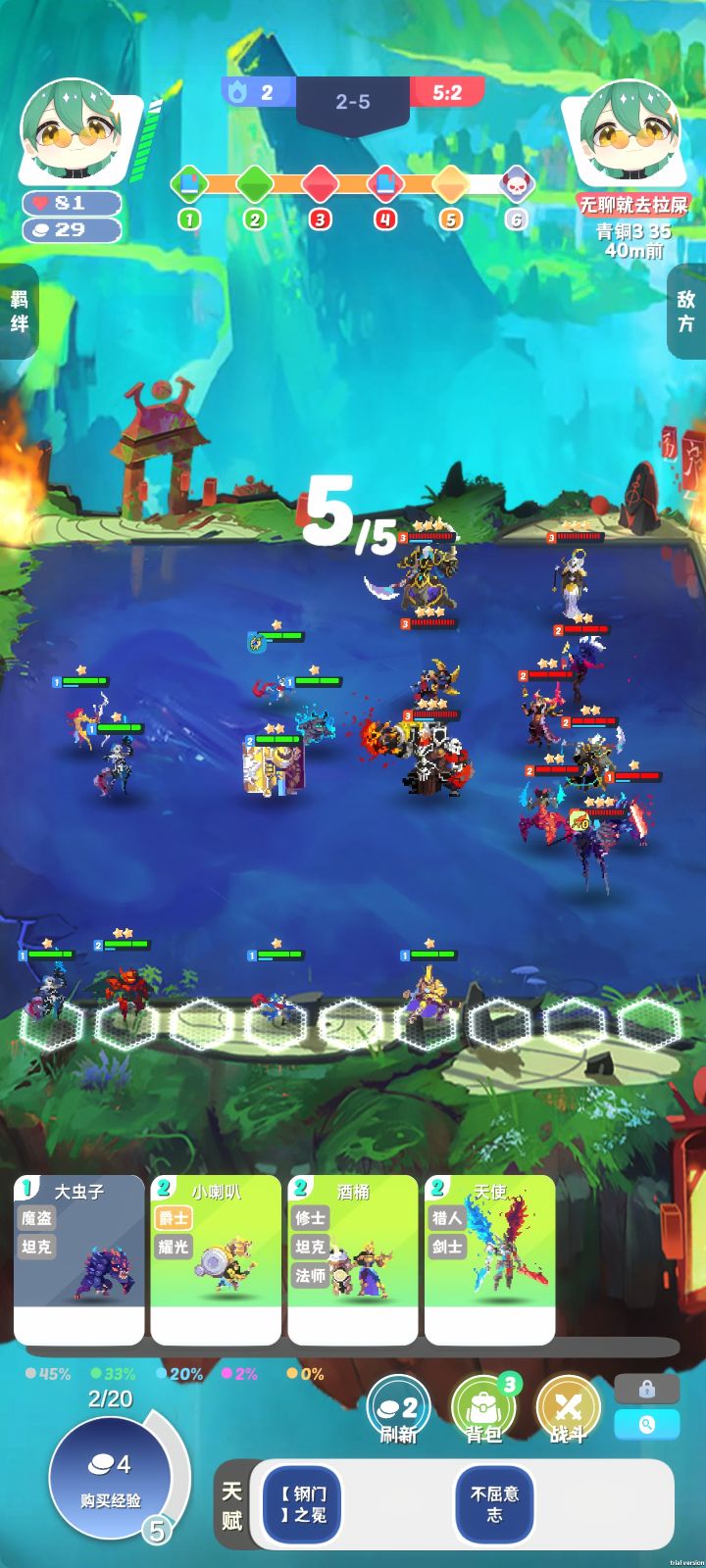二阶段,对面三星五费。后面还能匹配到一堆开挂的,我刚上8级就寄了。这游戏官方不解决挂的问题,要么新老玩家流失,要么人人都去开科技。