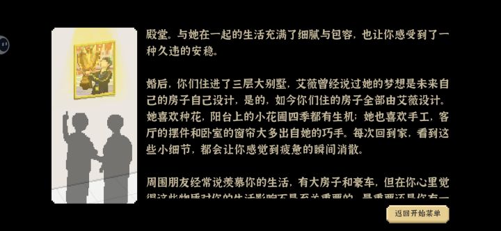 1. 开头先自己做一个超过 500 评分的作品然后可以开通商业接单(此处注意,不是需要评分越高的获得的钱越多,有些需要的评分低但钱比较多)2.*前期一定要和一个女性角色多交流,已知有老宅的儿时玩伴(主要为农业方向)和广告店的前台(美工方向)(如果还有大家可以补充),此处建议为广告店的前台,能够恢复心情(但她为有钱人家的千金 结婚需要豪车和房子)。在第一个月中后期会触发和女性角色成为情侣,妈妈会