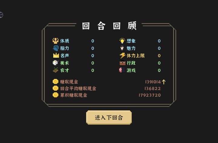 一晚上速通 作者新版本做的不错 挺好的 推荐可以加个存档 点数继承啥的 赚钱前期比较快的感觉也就ui设计了 游戏想拿全国第一基本都得充钱到金套,没开游戏工作室之前应该充不到那么多,考公也得花钱投入,种地也得,感觉前期可以ui过渡后期多段进行,钱就多了,后期8个直播效果10的主播基本就是八九十万利润。