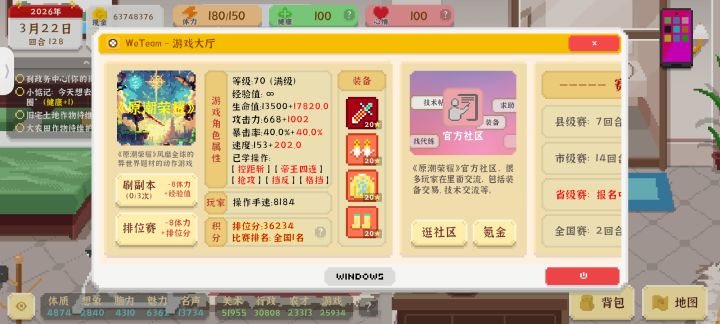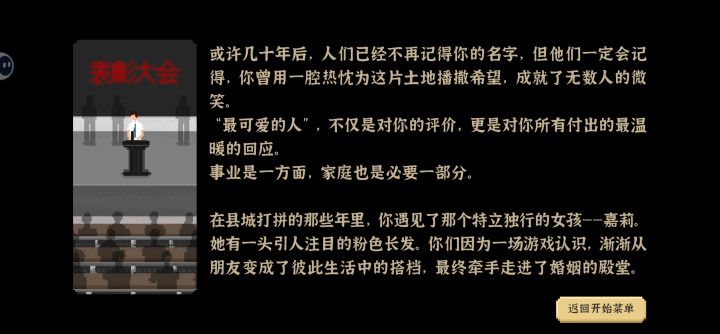 这游戏我2025年春节就开始游玩后面因为苦逼的学业生涯就暂时搁置了一年事到如今我又有肝了重新夺回来了一切(不是)打出了大结局然后这个游戏我也是配合攻略游玩比如说控距斩原来是晚点再睡的时候点一直看学习游戏视频嗯我一直都不知道总之迎来了大结局我是士农工商都学了既是公务员又承包了所有农场种地(怕不是黑奴)然后又是两家公司的CEO还是个主播