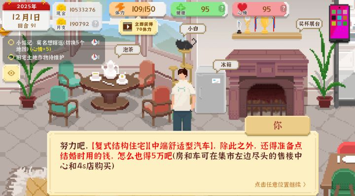 1.考公后林婉静反倒说我丢工作 (已解决)2.去医院恢复健康值,显示100但还是标健康值过低3.完成建设乡村后,名气提高了,但买卖东西还是原来的超高或超低价4.农田贴图一闪一闪的,靠近也一样 (已解决)新增5.解锁农田副手后,阿伯总是把我种的粮食水果变成蔬菜,设回来下回合又变回去,进度20的水果下一回合变成0的菜,魔术阿伯短短几天吃了我那么多水果坏了,现在阿伯吃我水果后不帮