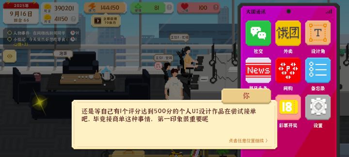 在设置里增加一个跳过cg每次听拖拉机的声音真绷不住,可以把这个调试一下,有时候收施肥后收割然后在种地,听三遍公务员上班薪资上调,真没看到什么有特点的性质种田前期种好直接跑步加体力体力上来了随便去开副业,美术前期只要体力上来了就一直接稿直接开公司坐满拔个银,公务员前期体力上不去,上个网课还要增加体力 后期这个职业就也用不上买房优惠什么的并没有太多吸引力,后期大把钱加强公务员!!!#我独自生