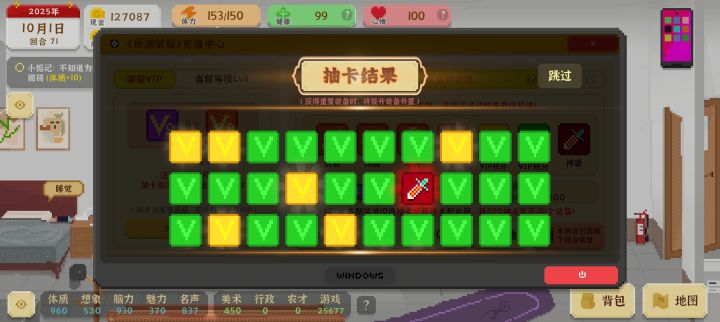 除了武器其它装备都满星了,然后一直抽不到装备,八百抽的保底跟假的一样,从一万抽到两万五千五百才抽到一个神器,其它的全是VIP经验#我独自生活 #我独自生活bug