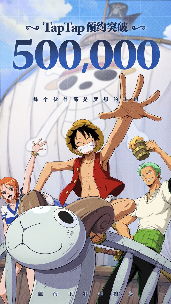 《航海王壮志雄心》TapTap平台50w预约已达成!砂糖这就来为船长大人们派送庆贺礼品啦~船长大人们只需要在评论区中晒出预约成功截图,并分享记得最深的一句航海王经典台词,即可成功参与砂糖本次的活动哦!砂糖将从参与成功的船长中随机抽取1位送出“路飞毛绒玩偶*1”、抽取5位送出“草帽全家福晴雨伞*1”、抽取10位船长送出“航海王刺绣徽章盲盒*1”。【活动时间】即日起至10月31日23:59【