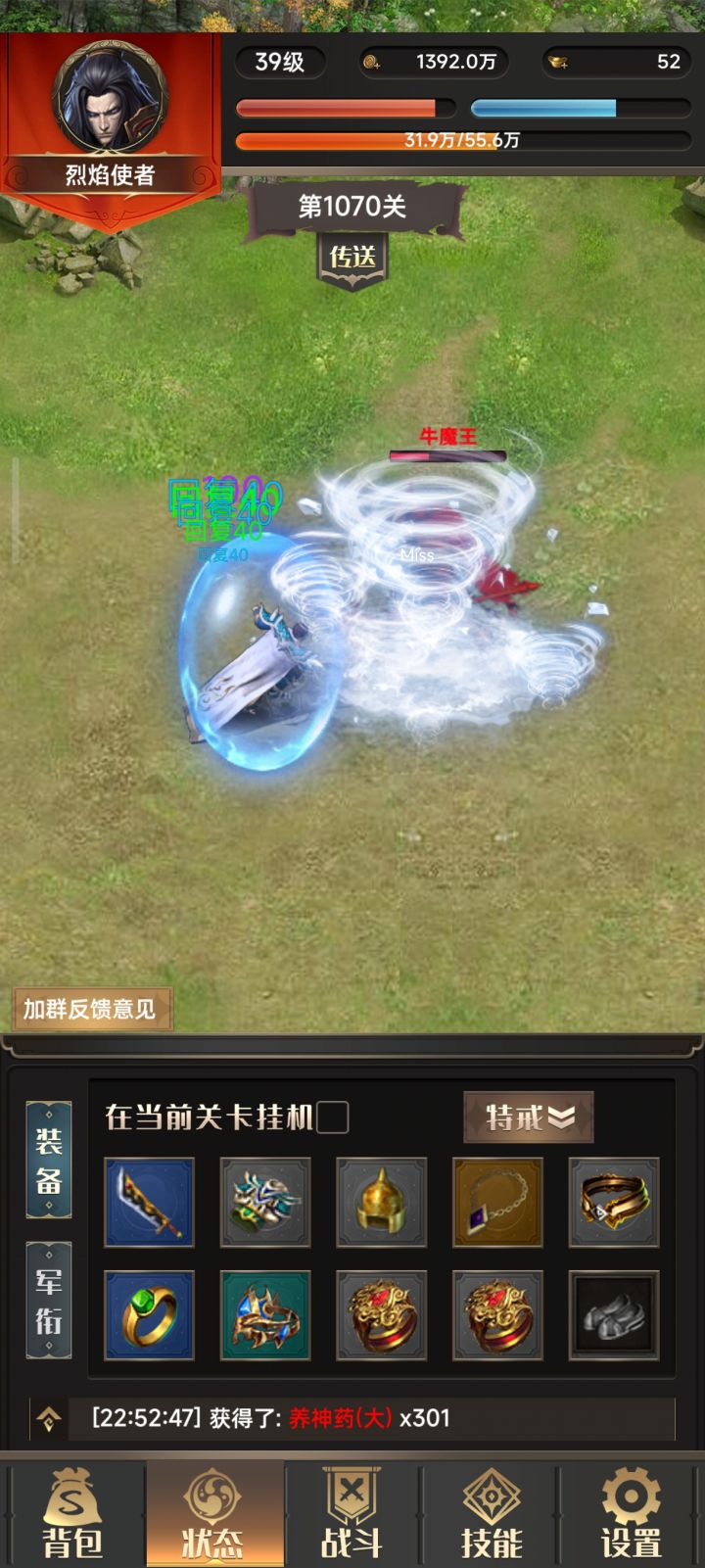 在线8小时一个能用的装备都没有!!!