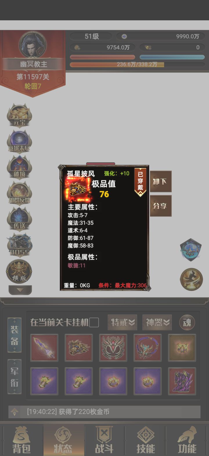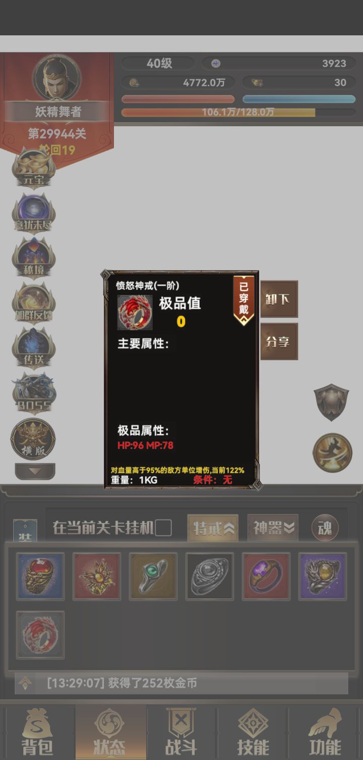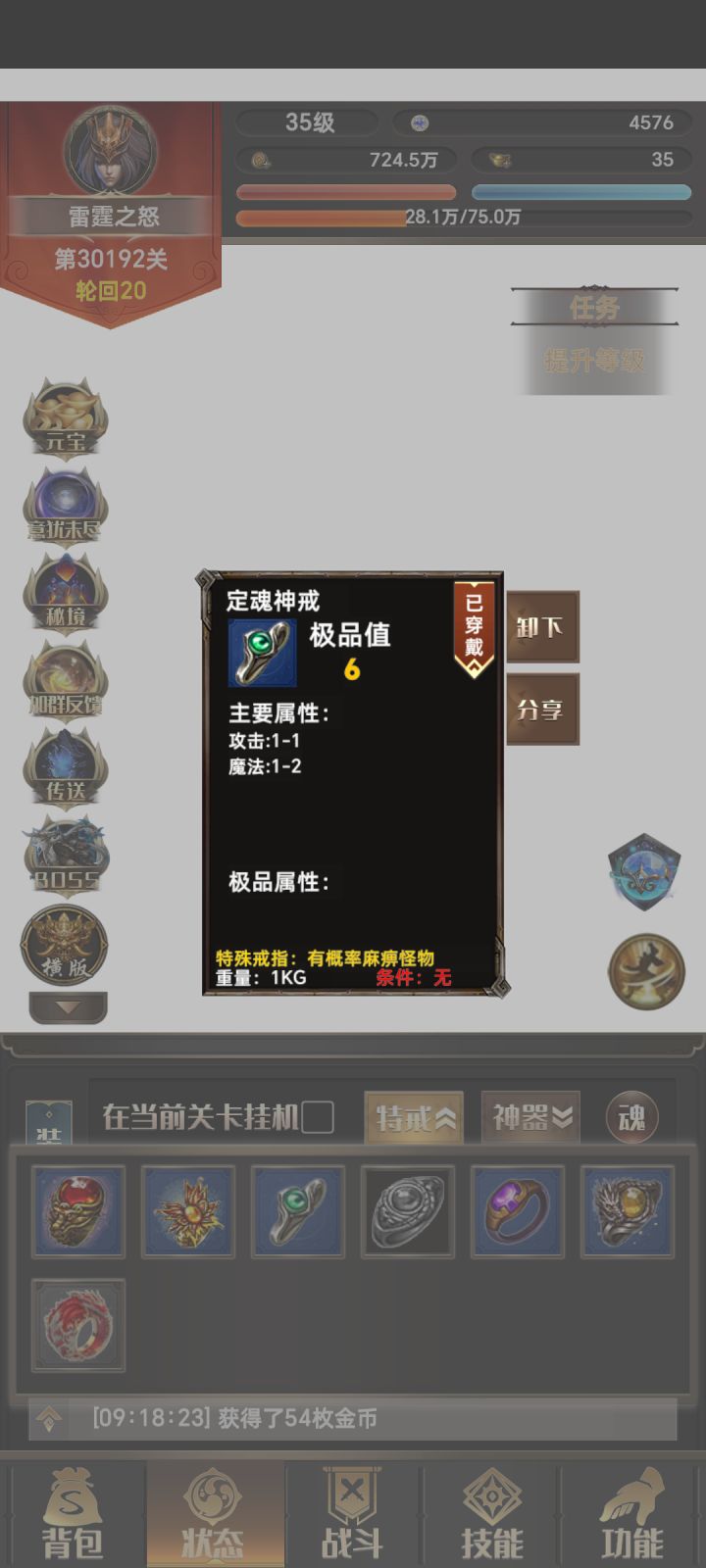 出货了!!!怪了?在170关打小怪爆神戒?