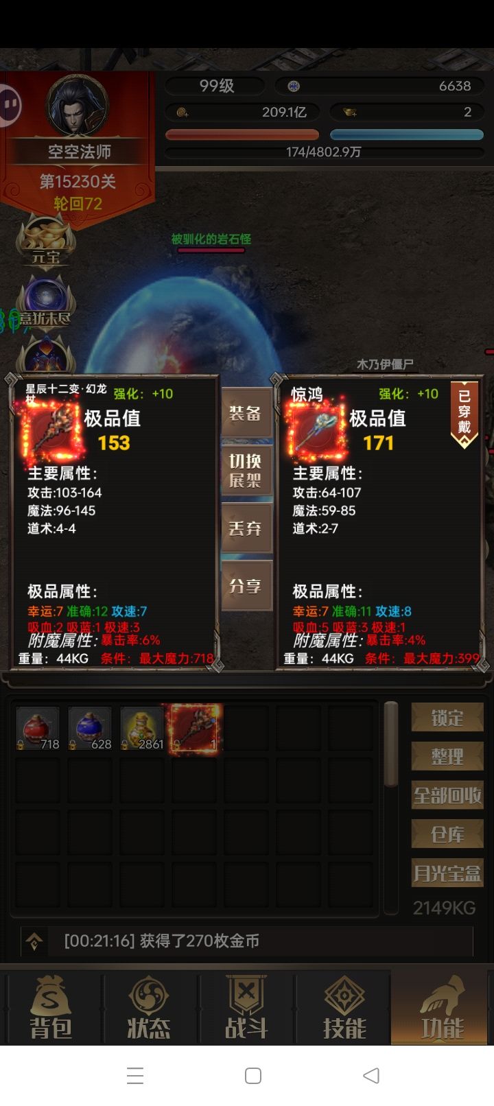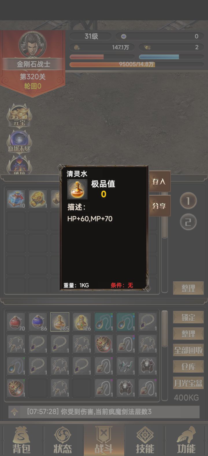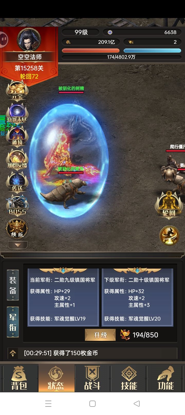 大明保佑!永不空军 轮回十几打深渊一要配复活,我方士打到53就出来了,估计是等级太低,41级,被BS活活敲死